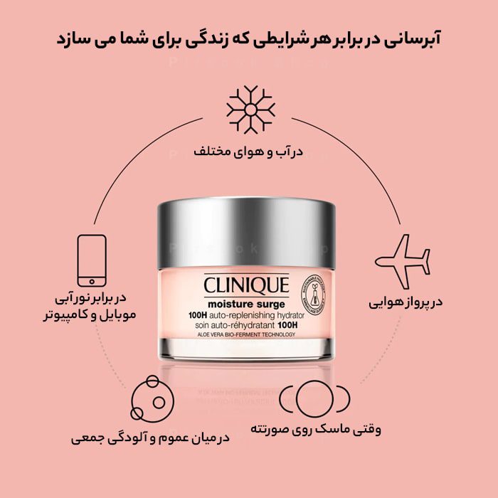 آبرسان مویسچر سرج 100 ساعته کلینیک با فناوری پیشرفته و مواد طبیعی،از موثرترین محصولات آبرسان است. این محصول با قابلیت آبرسانی عمقی و حفظ رطوبت تا 100 ساعت، پوست را نرم، لطیف و درخشان میکند و از بروز علائم پیری زودرس جلوگیری مینماید. همچنین، فاقد ترکیبات مضر و حساسیتزا بوده و برای انواع پوست، حتی پوستهای حساس، مناسب است. بافت سبک و کاربردهای چندمنظوره ژل کرم آبرسان مویسچر سرج 100ساعته کلینیک، آن را به یک انتخاب عالی برای هر فردی که به سلامت و زیبایی پوست خود اهمیت میدهد، تبدیل کرده است. اگر به دنبال یک محصول آبرسان قدرتمند و مطمئن هستید، آبرسان مویسچر سرج ۱۰۰ ساعته کلینیک میتواند گزینهای ایدهآل برای شما باشد